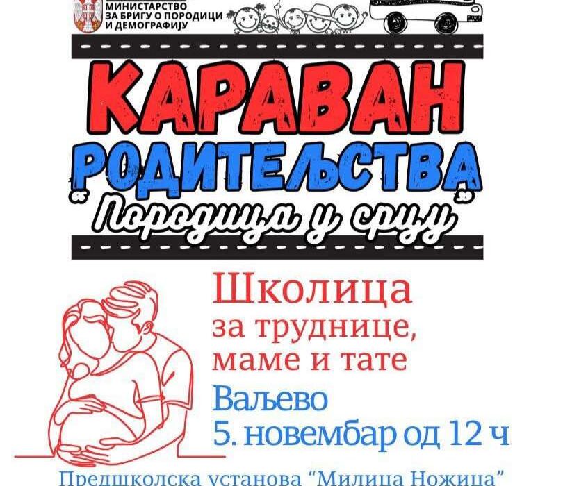 U organizaciji Ministarstva za brigu o porodici i demografiju i grada Valjeva, sutra, 5. novembra će u obdaništu „Palčica“ u Ulici Filipa Kljajića bb, biti održan Karavan roditeljstva. Karavan će u 11 časova otvoriti državni sekretar Ministarstva za brigu o porodici Đorđe Dabić i članica Gradskog veća Valjeva Dušica Jovanović.